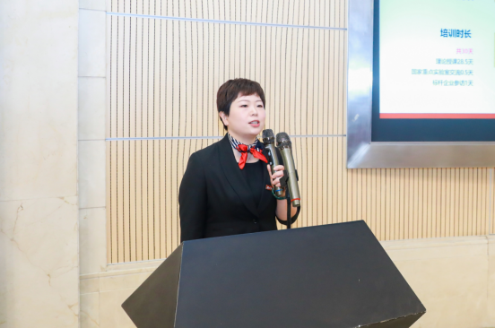 EDP中心副主任庞帆对项目背景、课程设计思路和项目运营计划进行了简单地介绍。经过前期反复地沟通与调研,EDP中心根据企业和学员的需求量身定制了十大模块共30天课程。旨在通过课题研讨、企业参访、重点实验室参访、学术沙龙等多种形式,对学员进行管理赋能,实现个人领导力突破与价值重塑,从而促进企业高质量发展。