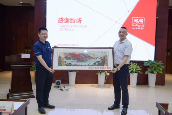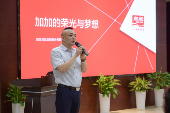 参观完加加的生产车间和整个厂区后,周建文总经理代表加加对同学们的到来表示热烈欢迎。在周总的介绍中,大家了解到了加加“加油干”文化图腾的释义。