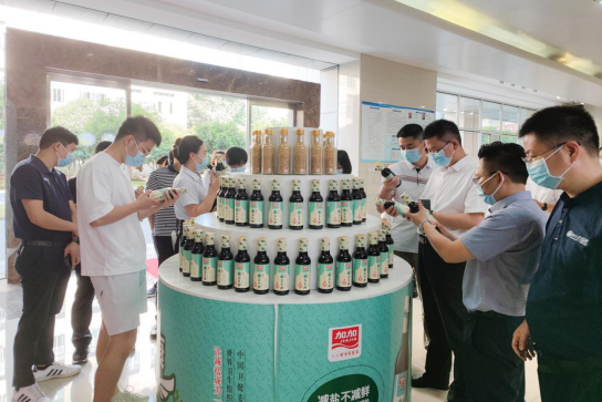 加加讲解员小姐姐详细地给同学们介绍了酱油的生产工业流程、产品原料、产品发酵期、生产期、车间设备及主要战略单品的卖点;同时,通过“全国人均盐分超标图”,科普了减盐知识,了解到减盐生抽是一款有中国政府和世界卫生组织背书的产品。