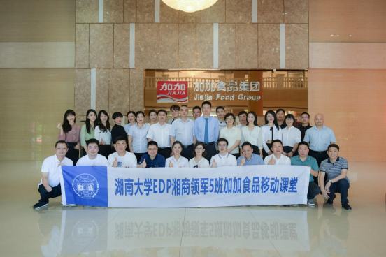 6月25-26日,带着对调味品企业的求知欲,湖南大学工商管理学院EDP领军5班的近30位师生聚首宁乡,走进班级同学周建文、刘素娥、戴小艳所在的加加食品集团股份有限公司进行了为期2天的移动课堂学习。