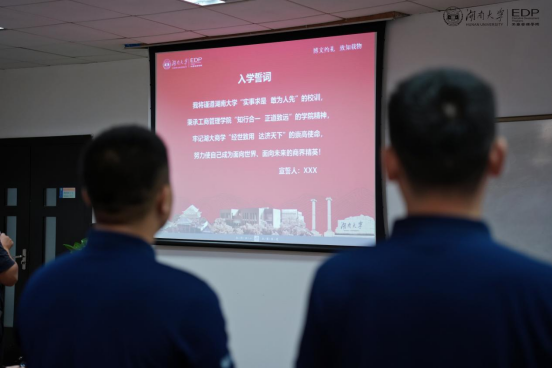 湖南大学工商管理学院党委副书记易洪波、EDP中心主任李平、副主任石丹彬、高管5班吴琼同学出席了本次开学典礼。典礼由高管27班班主任梁佳佳老师主持。