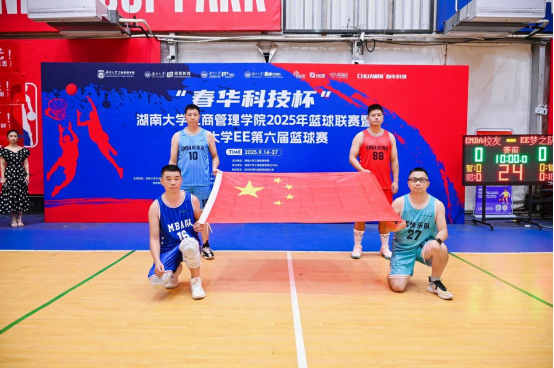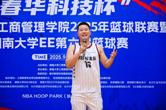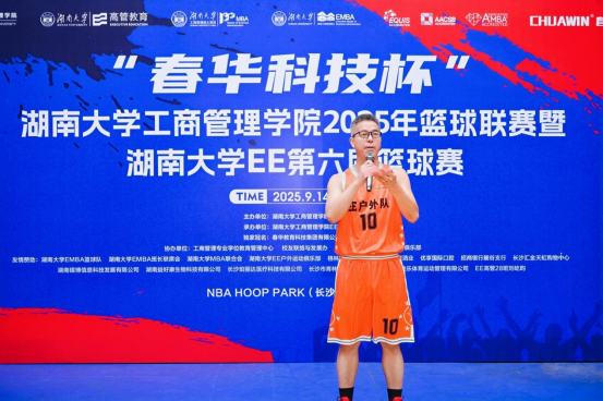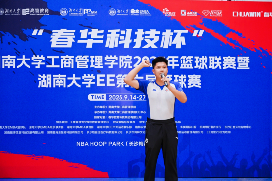 金秋送爽,战意高昂!9月14日晚,“春华科技杯”湖南大学工商管理学院2025篮球联赛暨湖南大学EE第六届篮球赛隆重启幕。EE中心主任李平、工商管理专业学位中心主任陈立勇、独家冠名商代表周乐顺、众多赞助商嘉宾以及八支精神抖擞的参赛队伍齐聚一堂,共同见证了这一热血沸腾的开幕时刻。开幕式由EE高管31班学员蒋蓓蓓主持。
