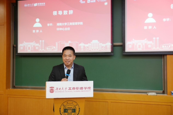 湖南大学工商管理学院EE中心主任李平、常务副主任石丹彬、副主任张憶琪出席了开学典礼。典礼由33班班主任王亚琴老师主持。
